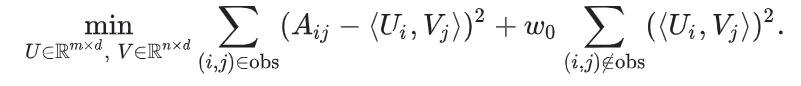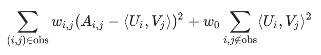 其中w(i,j)是用户i和物品j的频繁度的函数。最小化目标函数