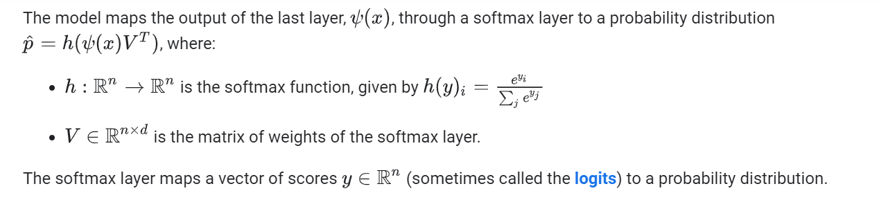 模型通过一个softmax层把最后一层的输出φ(x)映射为分布的可能性,其中