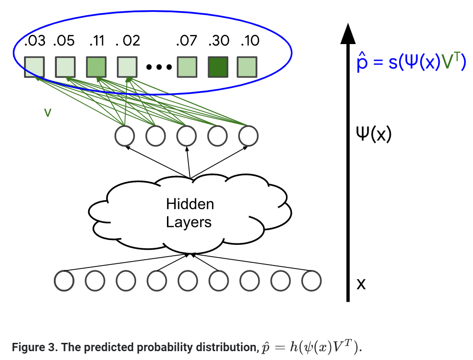 因为损失函数是比较两个可能性数组p,p^(x)∈R(n)(他们分别是真实值和模型的输出)。当n非常大的情况下,为一个query x计算梯度损失x的代价是非常高的。